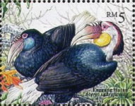 $5 stamp depicts the plain-pouched hornbill, but omits the intended label of the country name and year in the top left corner. The stamp was withdrawn February 3.