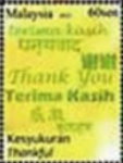 60-sen stamp depicts "Thank You" in English, Bahasa Malasia, Mandarin, and Hindi, but omitting Tamil by error of the issuing committee. The stamp set is withdrawn, revised, and re-issued July 18.