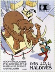 15-rufiyaa stamp depicts Walt Disney's Goofy in Chicago's Field Museum, wrongly captioned the Museum of Science and Industry.