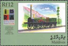 12-rufiyaa stamp depicts 1833 Der Adler train but is inscribed 1848 Drache; 15-rufiyaa stamp depicts 1848 Drache train but is inscribed 1833 Der Adler.