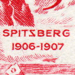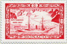 5-franc stamp depicts ship Princess Alice II at Spitzbergen, with a backward "z".