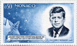 50-centime stamp depicts US President John Kennedy and his famous "ask not..." speech, but mis-quotes with "will" instead of "can".