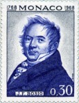 30-centime stamp depicts François Joseph Bosio with birth year 1768, but a set of eight Monaco 1948 stamps put his birth year at 1769. Which is correct?