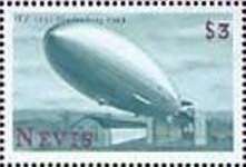 $3 postage stamps depicts the Zeppelin LZ-129, inscribed "Hindenerg" instead of Hindenburg.