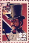 A listing of postage stamps of Nevis depicting design errors.