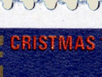 50-cent stamp depicts Christmas angels, but omits the "H" resulting in "CRISTMAS".