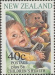 40-cent plus 5-cent semi-postage stamp depicts baby in car seat with teddy bear strapped in beside him, which indicates the shoulder strap is used (incorrect) rather than the seat belt (correct). The stamps were withdrawn and replaced by a seat belt only design.