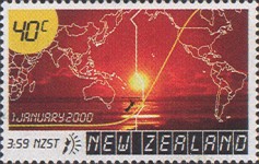 40-cent stamp commemorates the new year; the partial world map contains many errors of borders (Pakistan, Indonesia, Ethiopia, Yemen, USA, etc.), and the 3rd millennium began January 1, 2001, not 2000.