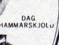 21-centesimo stamp depicts Dag Hammarskjöld, misspelled as "Hammerskjöld".