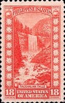 18-cent stamp depicts a waterfall with caption "Pagsanjan Falls", intending to show Pagsanjan Falls in Laguna, Luzon, Phillippines; what actually appears on the stamp is Vernal Falls in Yosemite National Park, California, USA.