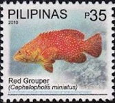 35-p stamp of Cephalopholis miniata is incorrectly inscribed "Cephalopholis miniatus".