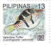 13-p stamp depicts Valentini Puffer, but is incorrectly inscribed "Valentine".
