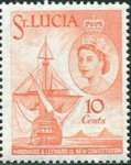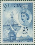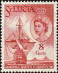 8-, 10-, and 25-cent postage stamps shows Christopher Columbus' ship "Santa Maria" off the Pitons, but Columbus is not believed to have reached Saint Lucia.