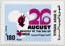 180-p stamp commemorates Namibia Day, but misspells the name as "NAMBIA".