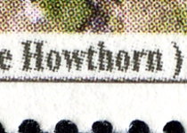 17-pound stamp depicts hawthorn tree with misspelled caption "Tree Howthorn".