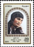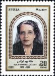 20-pound stamp depicts Thuraya al-Hafiz, inscribed "Thorya".