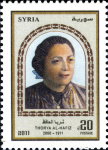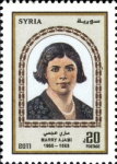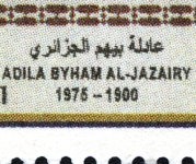 20-pound stamp depicts Adleh Bayhum Aljazairi, inscribed "Adila Byham al-Jazairy".