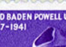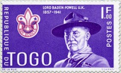 1-franc stamp marks 20th anniversary of death of Lord Baden-Powell, missing the hyphen in his name.
