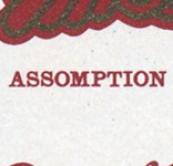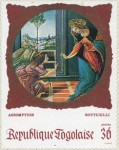 30-franc stamp depicts Botticelli's The Annunciation, erroneously captioned "ASSOMPTION".