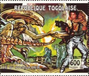 600-franc stamp depicts officer Ellen Ripley holding Newt and an Alien, with caption "ALIEN", but Newt appeared in the film's sequel "Aliens".