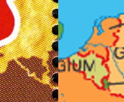1-tl stamp depicts map of western Europe, miscolor of sea shows Netherlands under water.