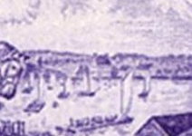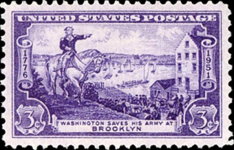 3-cent postage stamp depicts General George Washington evacuating the army from the Brooklyn Hieghts to Manhattan. The stamp clearly shows a well-lit daytime scene with clouds in the sky, but the evacuation was done under cover of the night of August 29-30.
