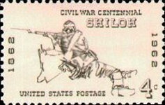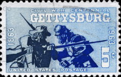 5-cent stamp depicts two soldiers battling, but the bayonets on their rifles are not the type used in the US Civil War.