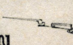 4-cent stamp depicts a soldier with bayonet mounted incorrectly on the top of the rifle, which would interfer with proper aiming.