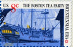 8-cent stamp depicts British 3-mast ship, with the Moon showing through breaks in the rigging.