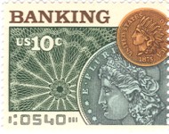 10-cent stamp depicts US $1 silver coin, of a type not struck until 1878. 10-cent stamp depicts US $20 gold coin without "In God We Trust" motto, meaning it is a type from 10+ years before ABA founding.
