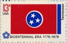 13-cent stamp depicts the state flag of Tennessee, upside-down. The state governor signed a resolution requesting a correction, but a new stamp was not issued.