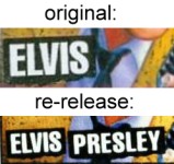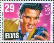 29-cent stamp depicts Elvis Presley with caption "ELVIS". Five months later same stamp is issued with caption "ELVIS PRESLEY" as part of series of entertainers.