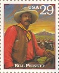 29-cent stamp with caption "Bill Pickett" actually portrays his brother Ben. The sheet of 20 different portraits was recalled and re-issued, but the originals with the error were sold at face value by the post office.