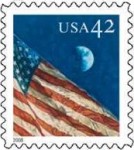 42-cent stamp shows US flag at night with 14 stripes instead of the correct 13 (7 stripes below blue canton instead of 6).