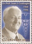 12-peso stamp marks the 100th anniversary of Dr. Juan J. Crottogini, and depicts the caduceus of Roman god Mercury, rather than the staff of Asclepius, the Greek god of medicine.