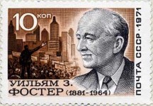 10-kopek stamp depicts US Communist Party leader William Foster, with year of death "1964" instead of the correct 1961. A corrected stamp was issued December 8.
