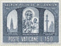 150-lira stamp depicts church of Bright Mountain, Czestochowa, but errs in placing the cedilla under the "z" rather than the "e".