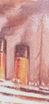 2.50-marka stamp depicts the Titanic with smoke coming from all four funnels, but the rear funnel was non-functional.