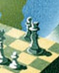 5-dinar stamp depicts layout of a chess game played in 1924, except the black bishop should be directly behind the king, on the white square. Also, the continents on the globe in the background are really messed up in the north.