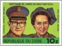 10-zaire stamp depicts Salvation Army leader General Arnold Brown and wife, with erroneous caption "Mrs. General Brown".