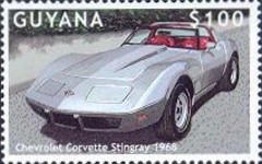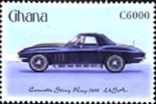 6000-cedi postage stamp depicts a 1966 Corvette.