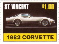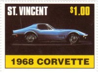 A chronological listing of world postage stamps depicting Chevrolet Corvette cars.