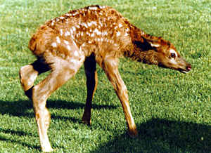 back leg. The fawn could only lie with its legs straight out behind him, and