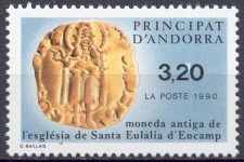 3.20-franc postage stamp depicts a coin from St. Eulalia's Church, Encamp.