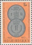 1.50-franc postage stamp depicts a 1-franc coin of Belgium, and a 1-franc coin of Luxembourg.
