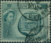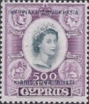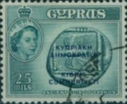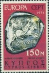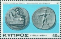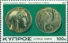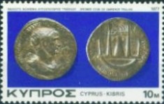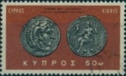25-millieme postage stamp depicts a coin of Paphos; 500-millieme stamp depicts four coin devices of Cyprus; 1-pound stamp depicts four coin devices of Byzantium, Lusignan, Ottoman Empire, and Venice.