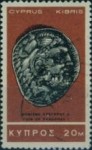 20-millieme stamp depicts Apollo, Marion, 5th century BC; 30-millieme stamp depicts Eagle's head, Paphos, circa 460 BC; 40-millieme stamp depicts Pallos Athena, Lapithos, 388-387 BC; 100-millieme stamp depicts Sphinx and lotus flower, Idalion, about 460 BC.