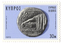 3/4-piaster postage stamp depicts a silver coin of Amathus.