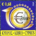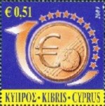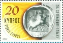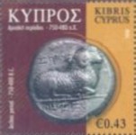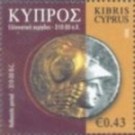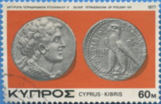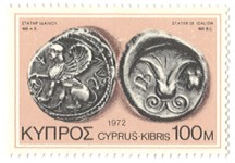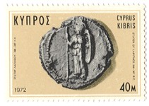 A listing of postage stamps of Cyprus depicting coins.