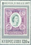 120-millieme stamp depicts 1960 Cyprus stamp showing four coin devices of Cyprus.